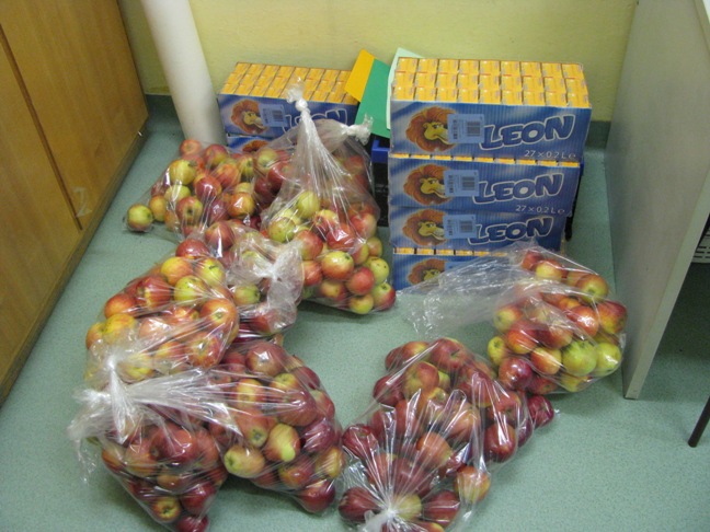 Uczniowie klas I- III od paru lat otrzymują owoce, warzywa i soki.