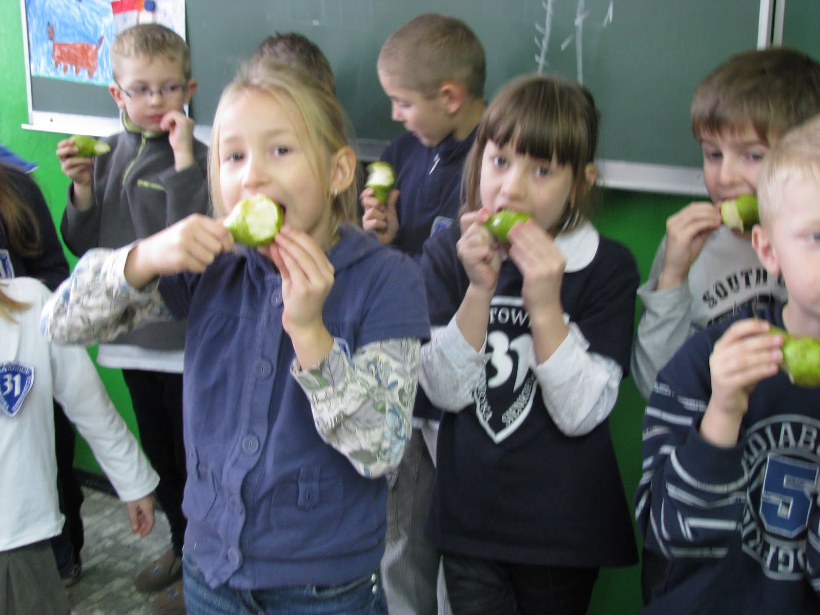 zapisane zostały na „stronach owocowych lub warzywnych” książeczek klasowych. I po szkole poszła